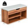 This modern wooden shoe cabinet is the perfect choice for you.it can not only store shoes on its bottom rack, but also socks, keys, and other items in its top shelf. The shelf in the left compartment can be moved up and down , so you can put any type of shoe cabinet in it, from high heels to low-cut sandals.. it look stylish and fits with any style apartment decor ,so you can put it in the entryway, living room, or bedroom. The sponge cushion on the top of this shoe rack gives you a comfortable and convenient experience when you change shoes, too, so no longer do you have to bend down to tie your shoes.